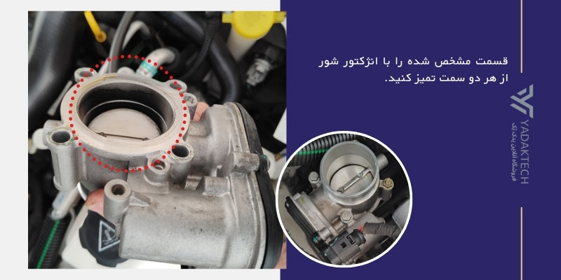 1. با یک دستمال یا پارچه بدون پرز داخل دهانه منیفولد خودرو را تمیز کنید و جرم به وجود آمده را از بین ببرید.