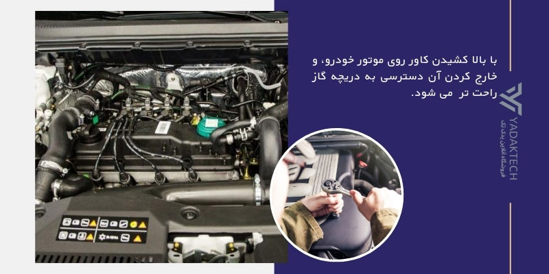 برداشتن کاور روی موتور برای دسترسی آسان تر به دریچه گاز شاهین.