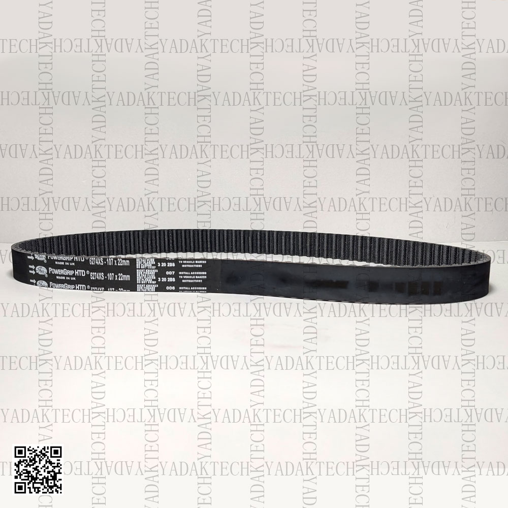 درون بسته بندی یک تسمه تایم 107 دندانه کد 5274-XS با برند پاورگریپ وجود دارد، که توسط شرکت هرینگتون واردایران و بسته بندی شده، بر روی تسمه تایم نوشته و اعدادی وجود دارد که هر کدام نشانه چیزی است.