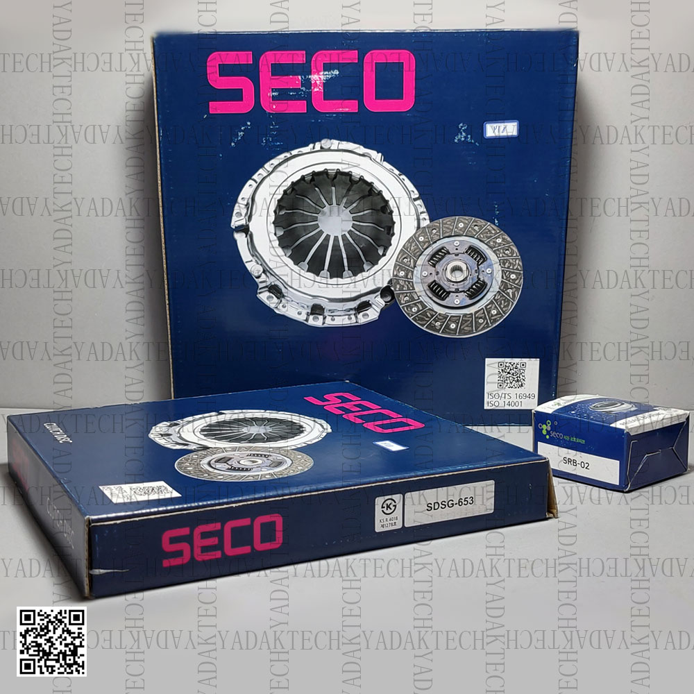 1. دیسک کلاچ سکو: دیسک از نوع 18 فنر که نام سکو SECO، علامت ساخت کره، و نشان سکو بر روی آن هک شده و همچنین در یکی از پنجه های داخلی دیسک شماره ای 7 رقمی حک شده است.