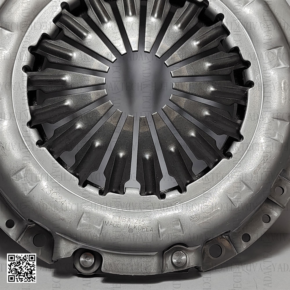 2. صفحه کلاچ سکو: کد ساخت، تاریخ تولید، نشان سکو، نام سکو، نوشته ساخت کره بر روی آن همانند تصویر محصول هک شده است. و همچنین صفحه کلاچ دارای 4 فنر دوبل بوده و نوع صفحه کلاچ سکو پریدمپری می باشد.